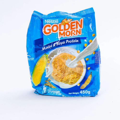 Nestlé Golden Morn is a nutritious and delicious cereal made from locally sourced whole grains, fortified with essential nutrients like vitamin A, iron, calcium, protein, and dietary fiber It provides energy for a great start to the day, supports good vision, helps in red blood cell formation, builds strong bones and teeth, aids growth and maintenance, and promotes a healthy digestive system This healthy cereal for kids and adults can be served by mixing 5-6 tablespoons with 200ml of warm or lukewarm milk, with or without sugar Available in various pack sizes, Golden Morn offers a convenient and tasty way to kickstart the day with a wholesome breakfast that replenishes energy levels, boosts concentration, and contributes to better weight management and reduced risk of chronic diseases.