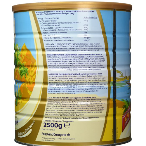 Overall, Peak powdered milk is a convenient and nutritious option for those who want to enjoy the benefits of milk without the hassle of keeping fresh milk on hand. Its long shelf life, versatility, and nutritional value make it a popular choice for families, travelers, and anyone who wants to maintain a healthy lifestyle.